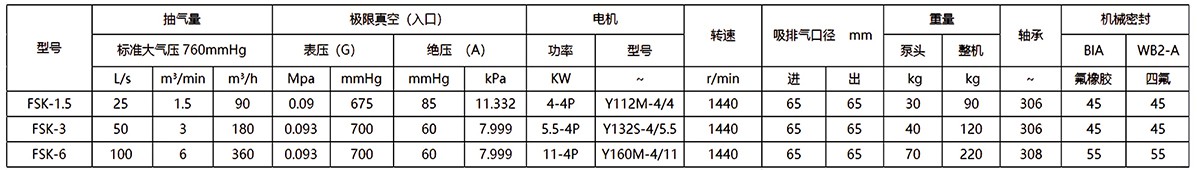 FSK系列耐腐蝕真空泵適應(yīng)于90~360m3/h的低抽氣量區(qū)間,極限真空度較低,可增加電機功率作為壓縮機使用。